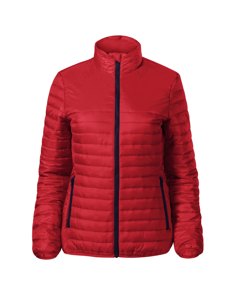 Dámská bunda z lehkého hřejivého materiálu členěný prošíváním. Střih tvarovaný bočními díly. Kapuce s podšívkou, kapsy s reverzním spirálovým zipem.
