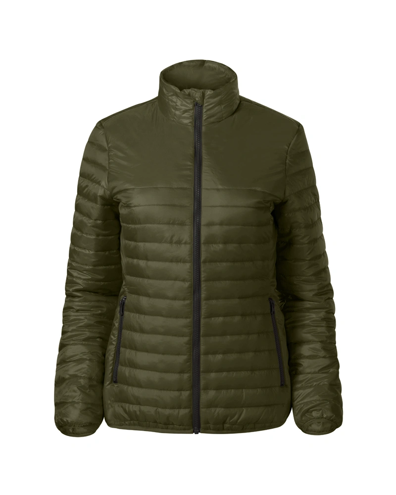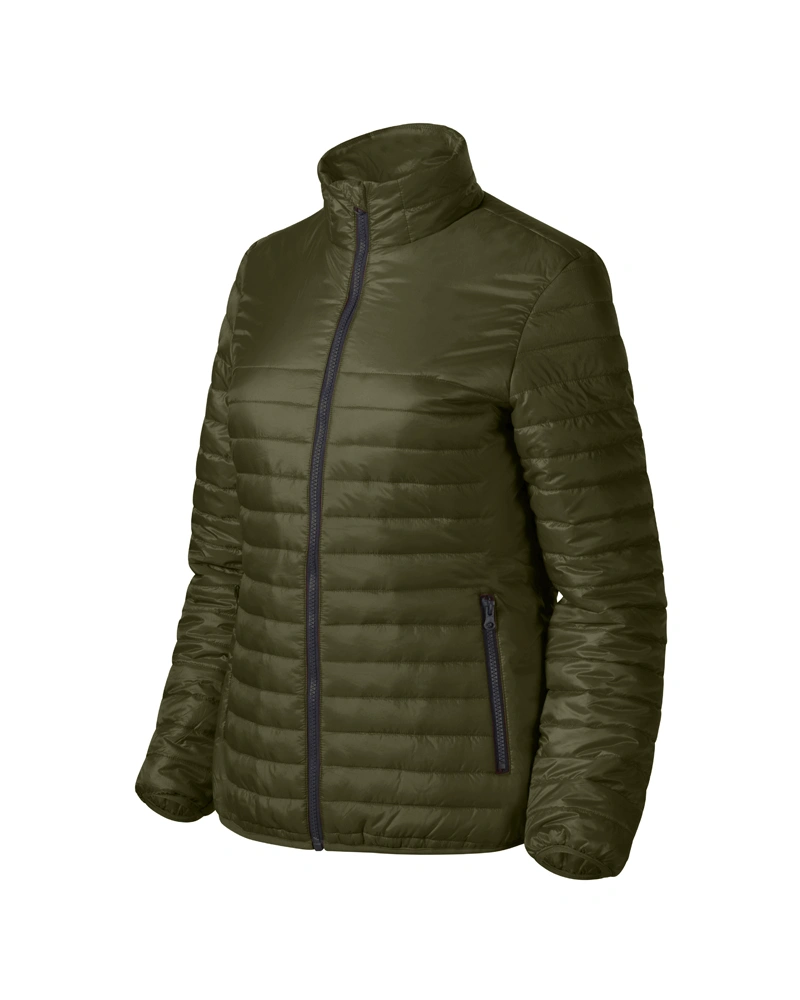 Dámská bunda z lehkého hřejivého materiálu členěný prošíváním. Střih tvarovaný bočními díly. Kapuce s podšívkou, kapsy s reverzním spirálovým zipem.
