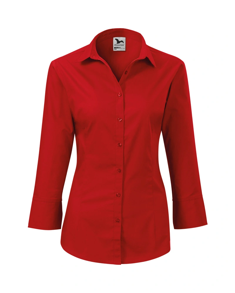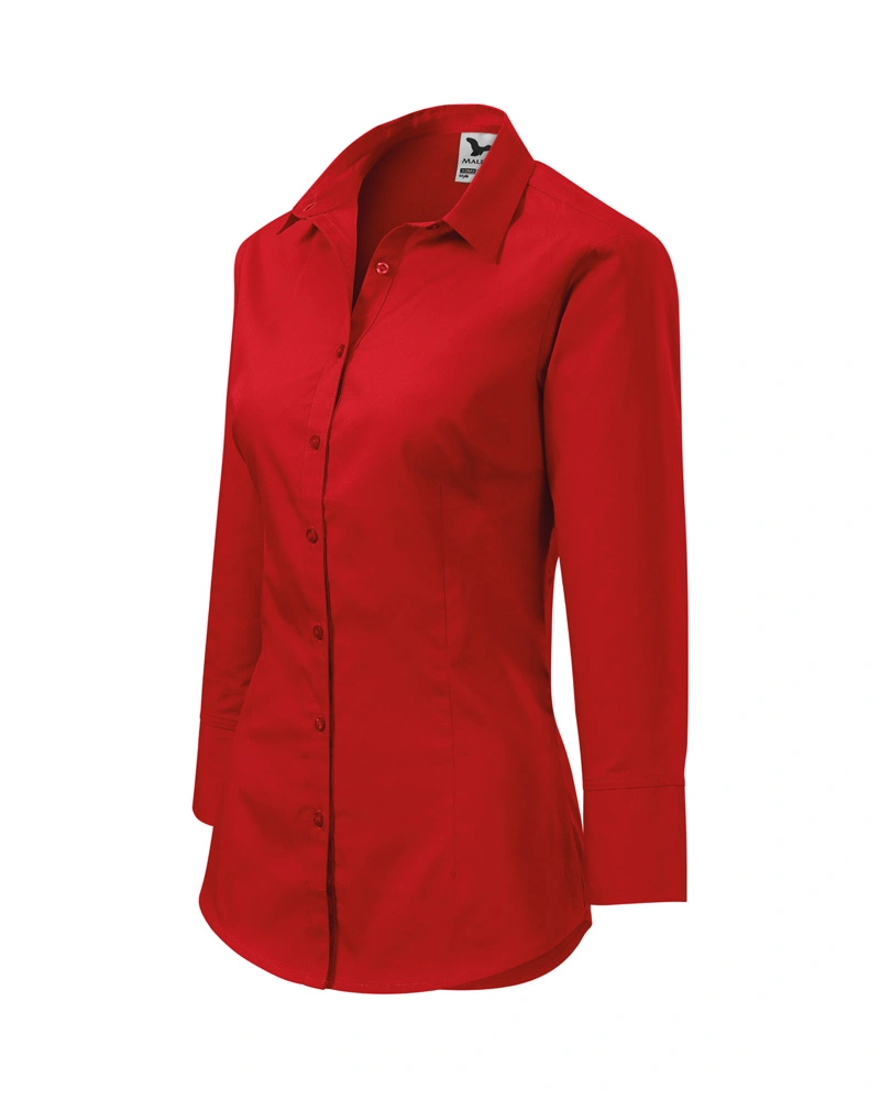 Kvalitní dámská košile s 3/4 rukávem z jemného materiálu. Tvarována pasovými a prsními záševky zvýrazňujícími dámskou siluetu. Dvoudílný košilový límec, zapínání na knoflíčky až ke krku, tvarovaný dolní kraj.Více informací
