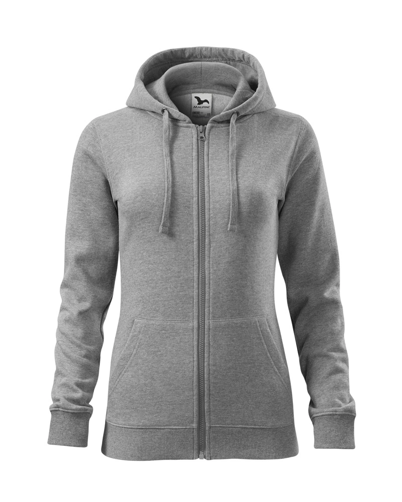 Dámská celopropínací mikina s kapucí. Přední kapsa ve stylu klokánky, kapuce s podšívkou - na stažení šňůrkou. Sedla a kapsy s dekorativním prošitím.Více informací