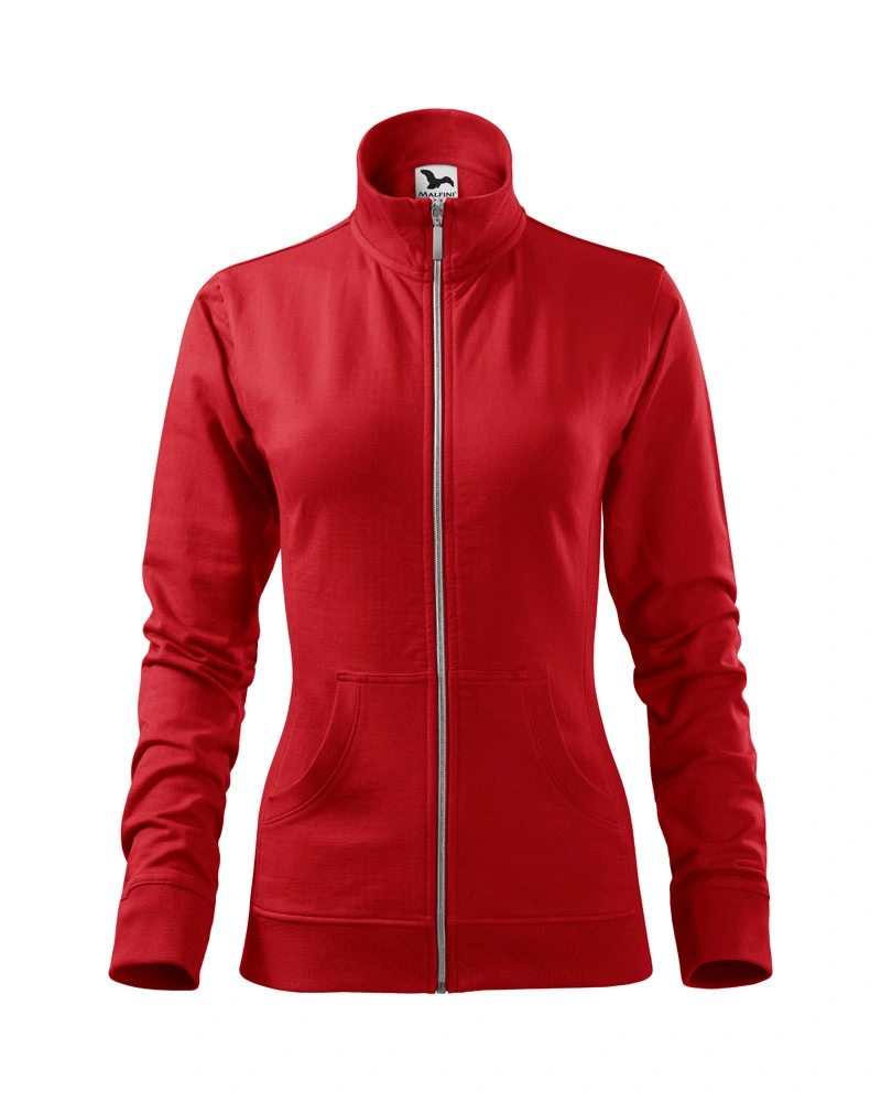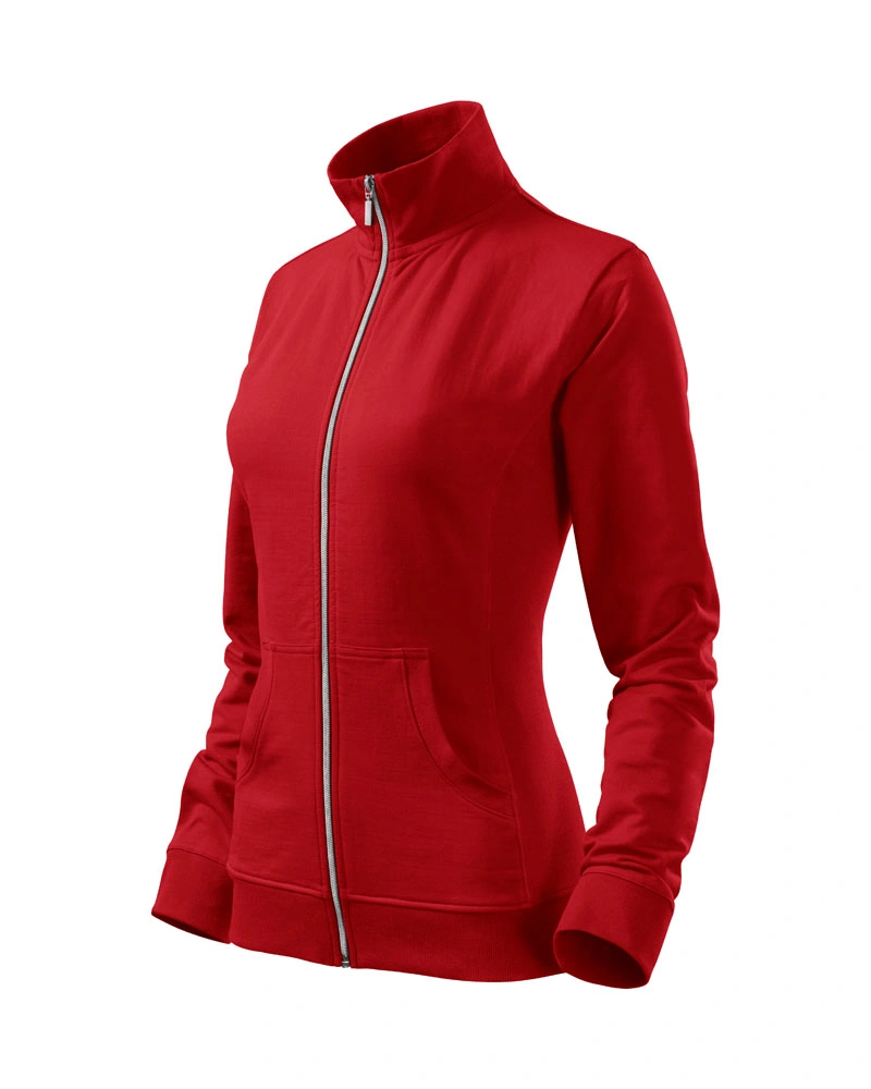 Dámská mikina s límcem v podobě stojáčku z žebrového úpletu. Celopropínací se stříbrným spirálovým zipem. Dvě přední kapsy ve stylu klokanky. Boční díly, spodní lem, manžety rukávů a lemy kapes z žebrového úpletu s přídavkem elastanu.Více informací