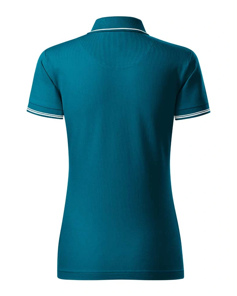 Elegantní dámská polokošile. Projmutý střih dává vyniknout ženské postavě. Límeček a rukávy zdobené kontrastním proužkem. Léga s 5 knoflíky. Přídavek elastanu pro lepší tvar.