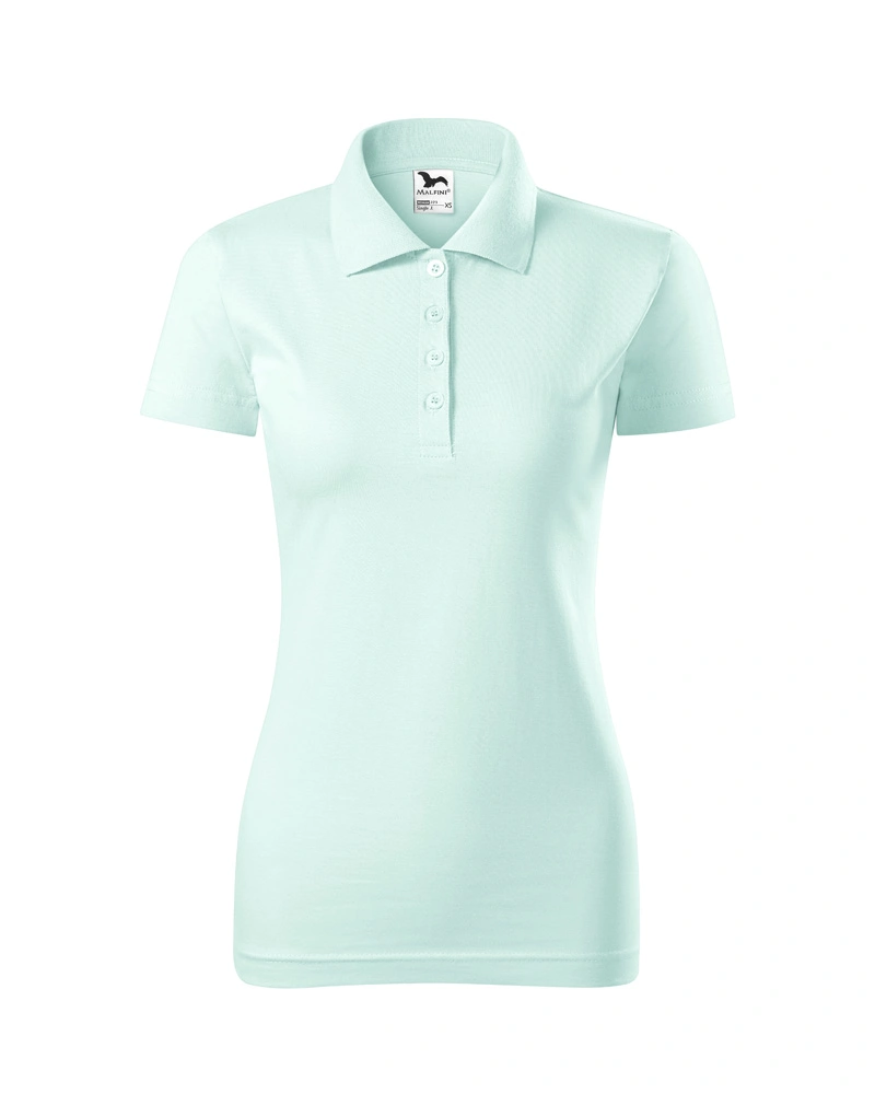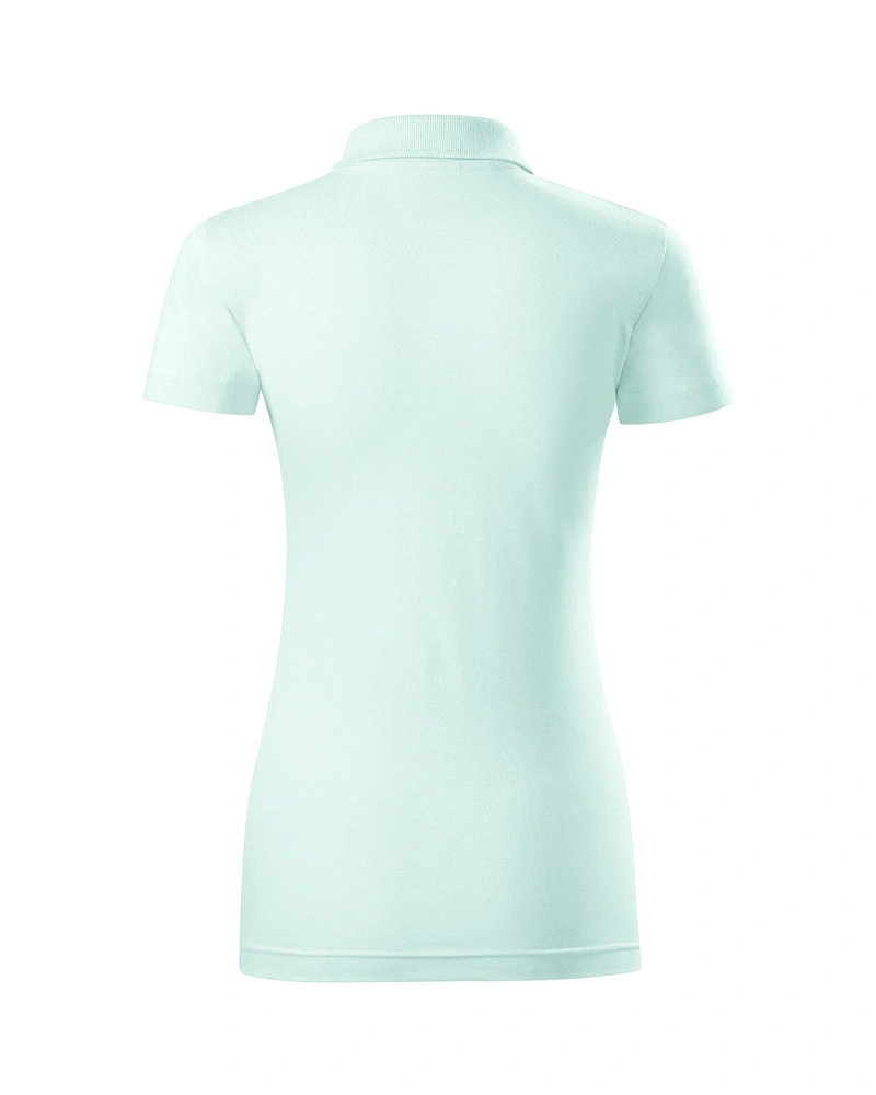 Dámská polokošile s dvojitým kontrastním proužkem na límci a manžetě. Límec a manžety na rukávech z žebrového úpletu. Střih s bočními švy, zpevněný ramenní šev.