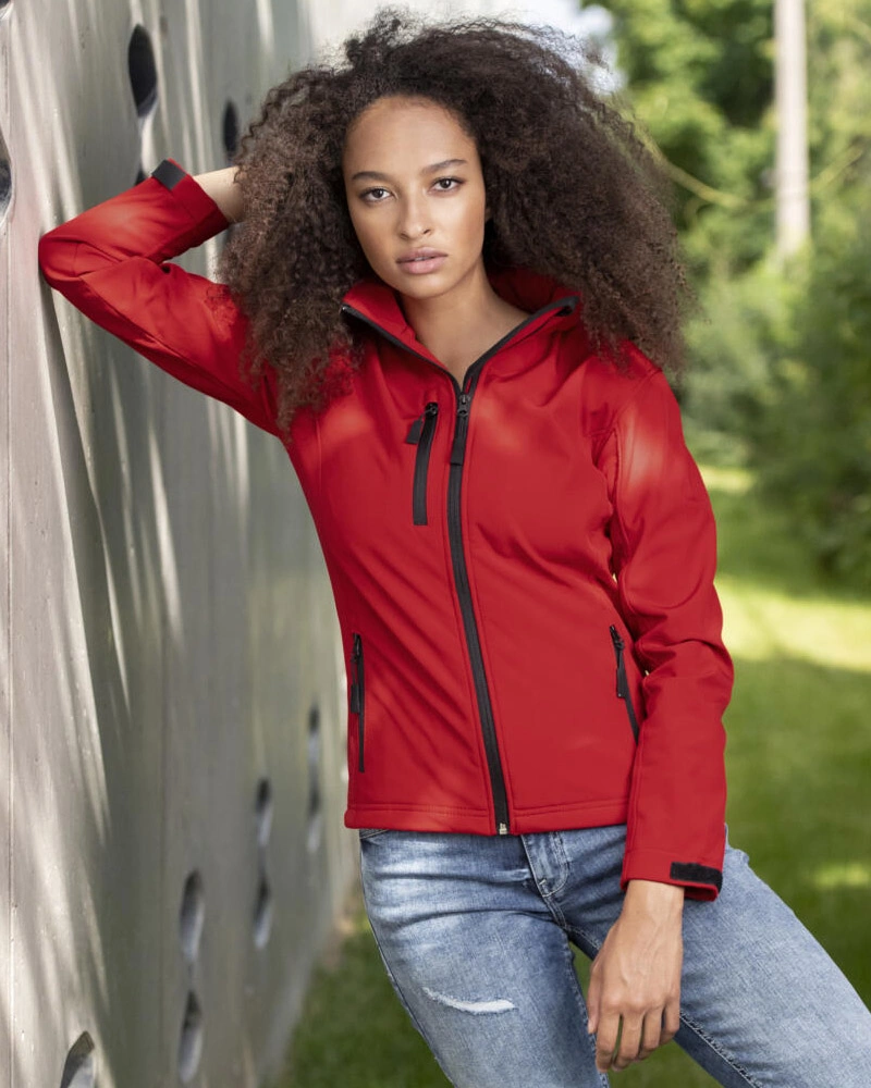 Dámská softshellová bunda s odnímatelnou kapucí. 2 přední kapsy a 1 náprsní kapsa na zip. Spodní lem rukávů nastavitelný suchým zipem. Možnost stažení dolního lemu šňůrkou.Více informací