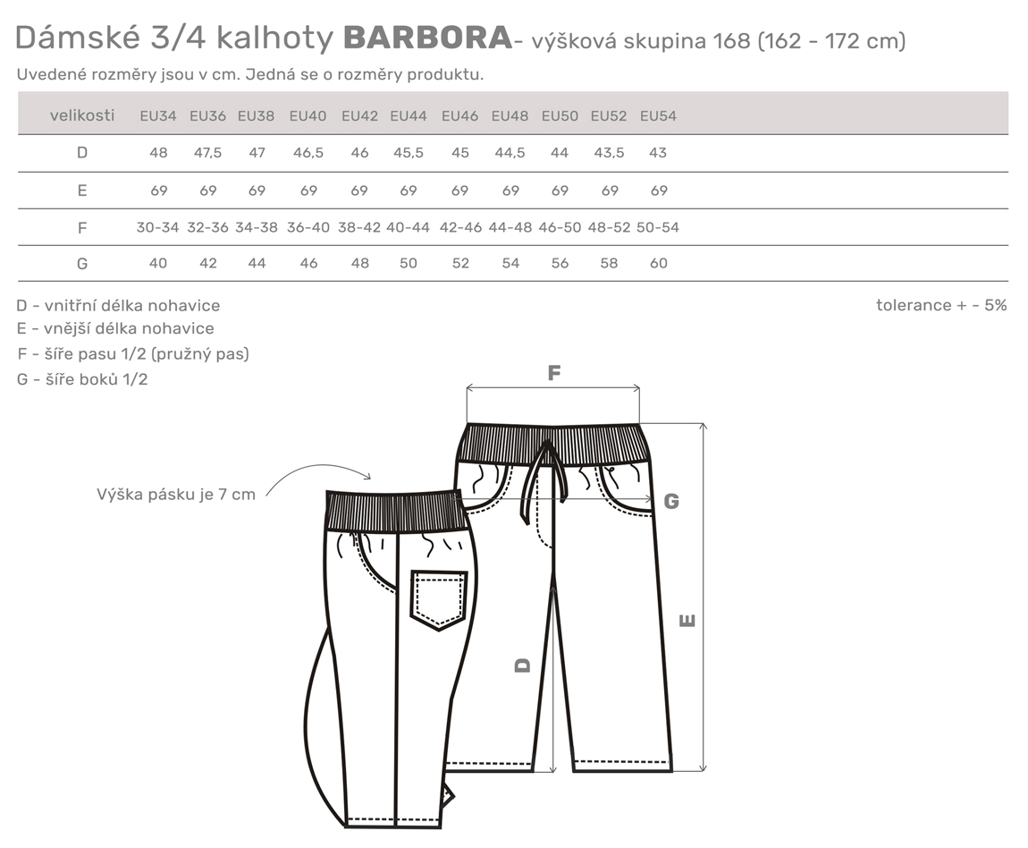Dámské 3/4 pracovní kalhoty s vysokým úpletovým pasem. Boční kapsy, konfekční velikosti.