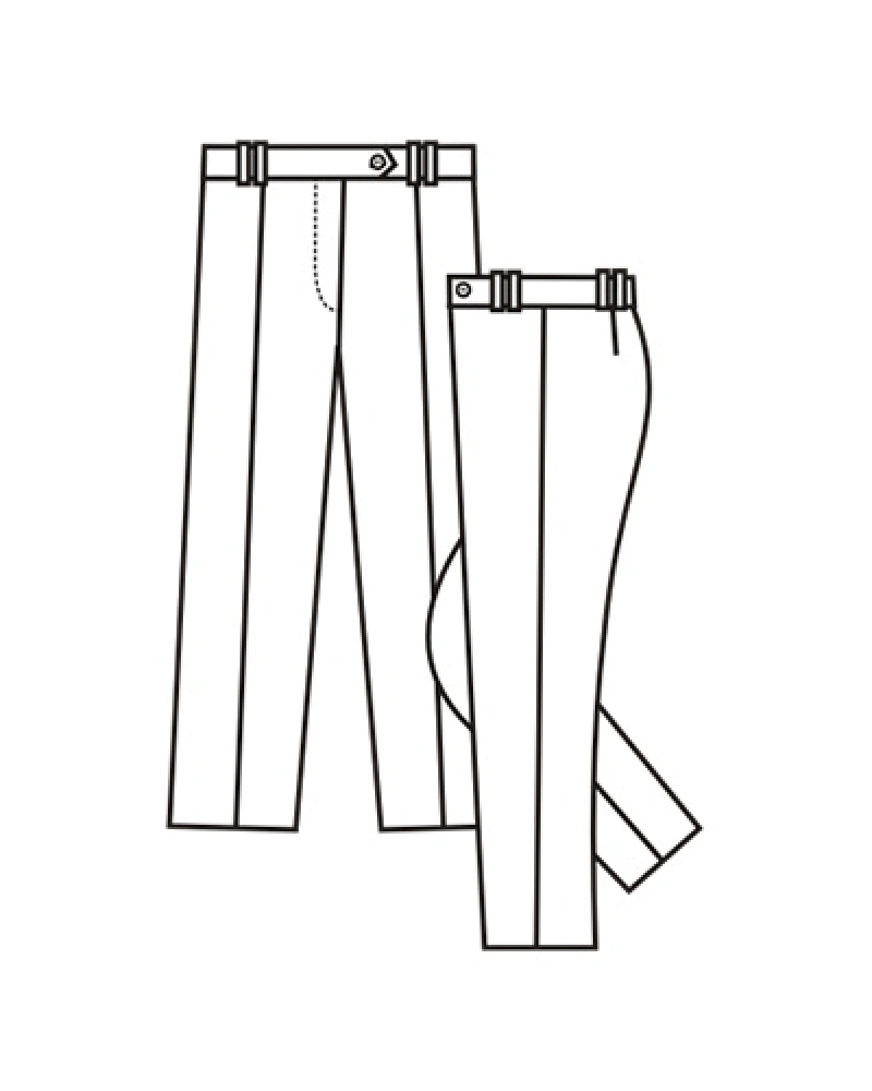 Dámské kalhoty pro servírky jsou do pásku, poutka v pase jsou našitá vždy dvě vedle sebe, rozparek je na uzávěr, v pásku je knoflík, v zadním díle jsou odšité záševky, na předních dílech jsou zažehlené puky.Více informací