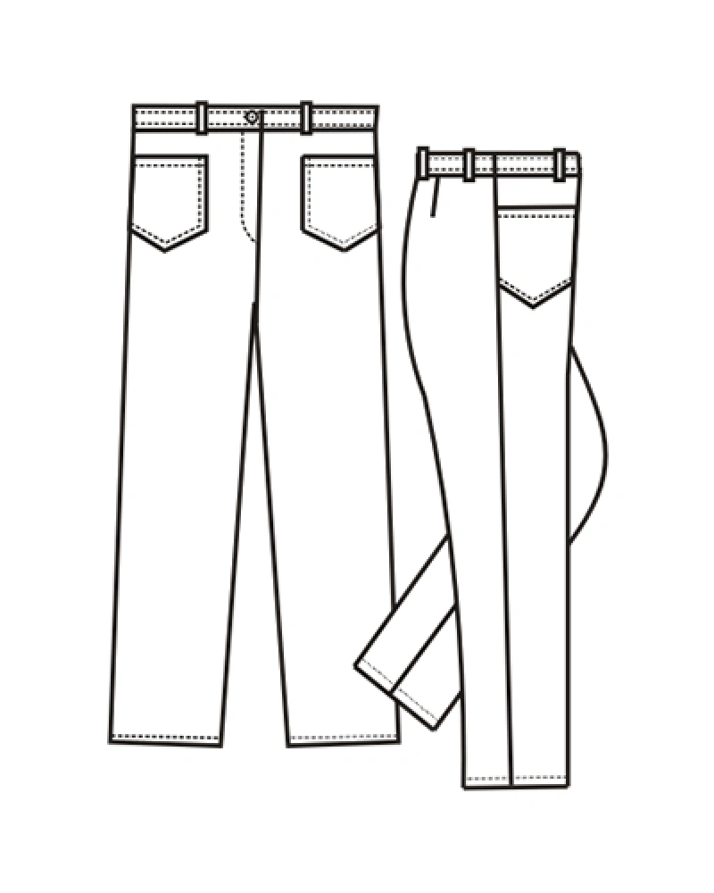Kalhoty do pásku se sníženým pasem a poutky. Rozparek na uzávěr. Přední kapsy.Více informací