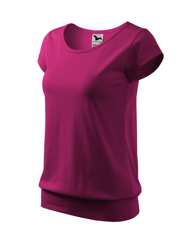 Dámské tričko volnějšího střihu s velmi krátkým rukávem. Kulatý průkrčník, ramena zpevněna všitým proužkem. Tričko sahá do hloubky boků.Více informací