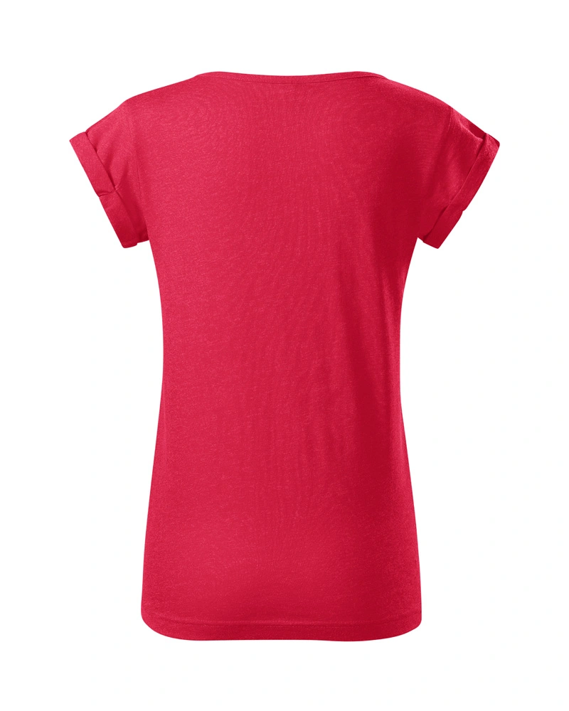 Dámské tričko v melírových barvách. Volný střih s bočními švy, zpěvněné ramena. Rukávy ohrnuté, lemován průkrčník.Více informací