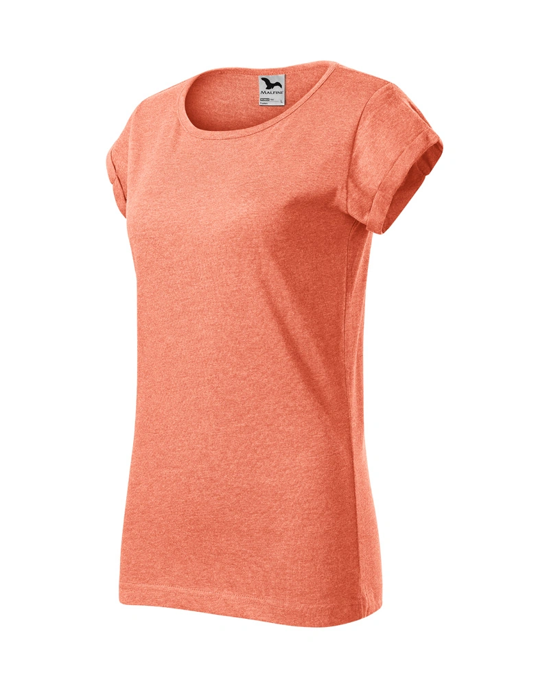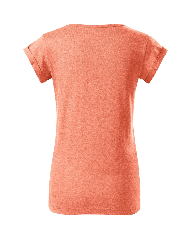 Dámské tričko v melírových barvách. Volný střih s bočními švy, zpěvněné ramena. Rukávy ohrnuté, lemován průkrčník.Více informací
