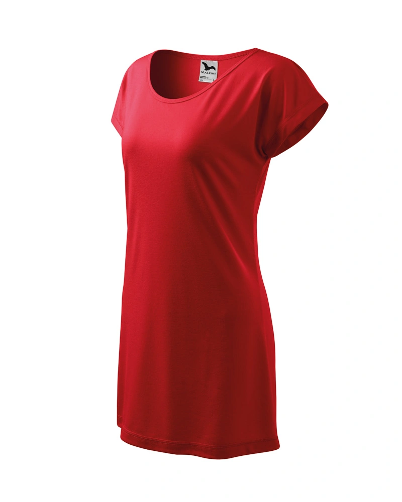 Dámské tričko s velmi krátkým rukávem. Kulatý průkrčník, ramena zpevněna všitým proužkem. Projmutý střih zvýrazňuje dámskou siluetu.