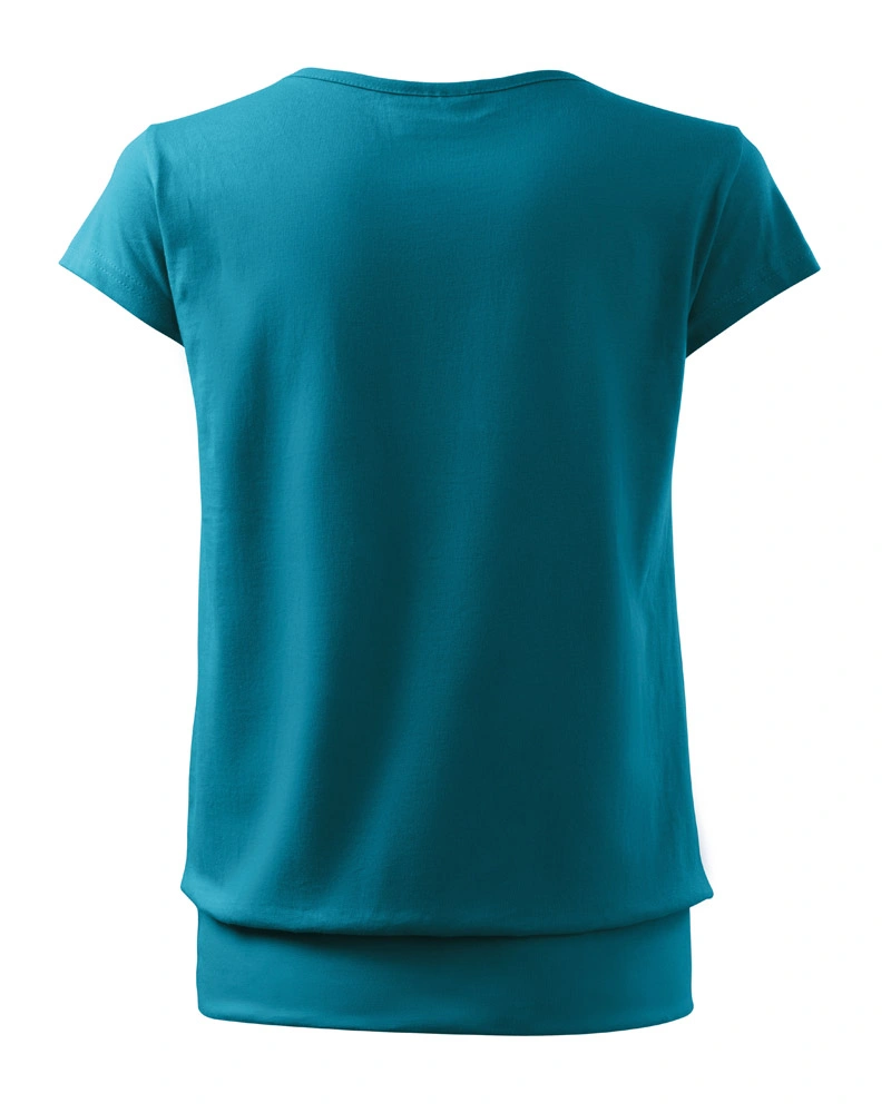 Dámské tričko volnějšího střihu s velmi krátkým rukávem. Kulatý průkrčník, ramena zpevněna všitým proužkem. Tričko sahá do hloubky boků.Více informací