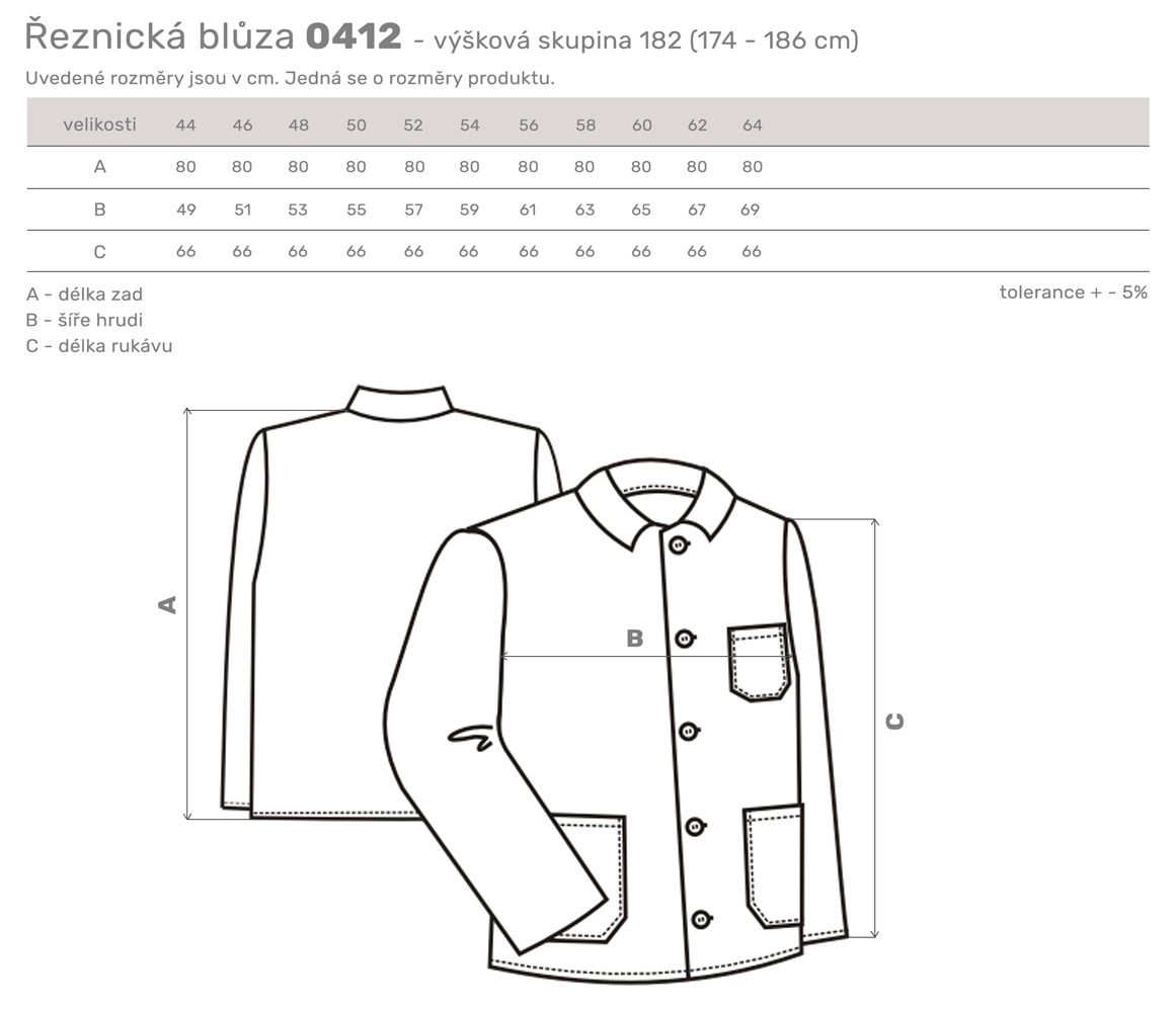 Pánská řeznická blůza letní, dlouhé rukávy, černobílá kostička, dvě boční a jedna náprsní kapsa.Více informací