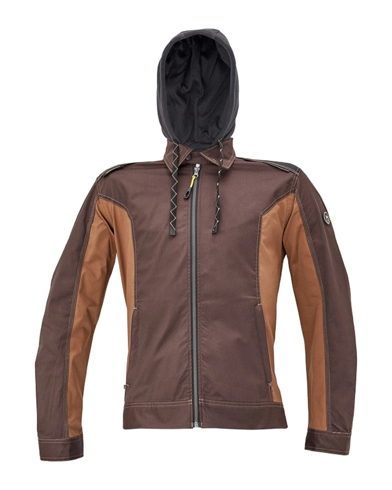 Pánská pracovní bunda z elastického inovativního materiáluTRIFIBETEX. Ergonomický střih a odnímatelná kapuce. Zesílená oblast ramen z materiálu Oxford. 2 postranní kapsy a vnitřní kapsa na telefon Reflektivní prvky v barevném odstínu.