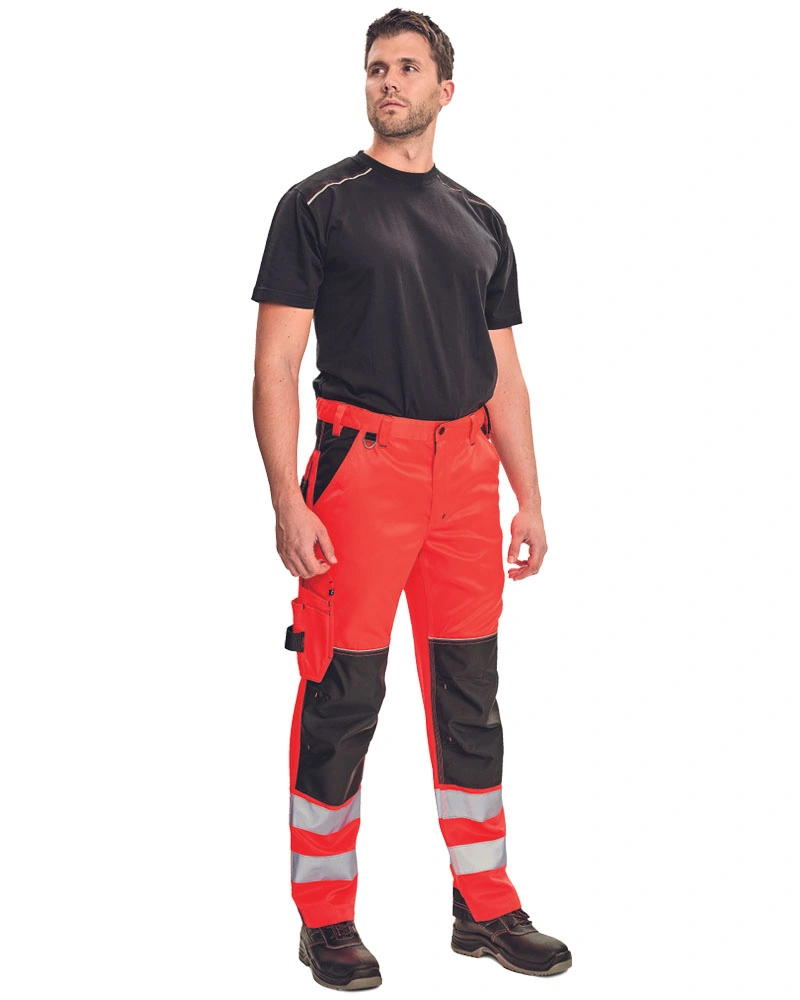 Pracovní reflexní kalhoty s elastickým páskem , 2 postranní kapsy, 2 zadní kapsy s patkou a 1 multifunkční kapsa na nohavici. Poutko na nářadí v kontrastní barvě. Zesilená oblast kolen, možnost vložení kolenních výztuh. Zesílená zadní strana spodku nohavic.Více informací