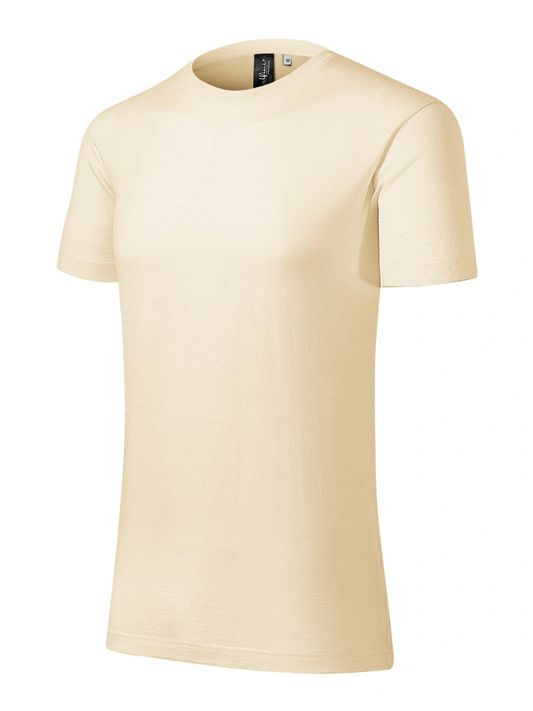 Pánské tričko v melírových barvách. Střih s bočními švy, zpěvněné ramena. Rukávy ohrnuté, lemován průkrčník.