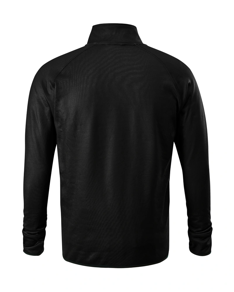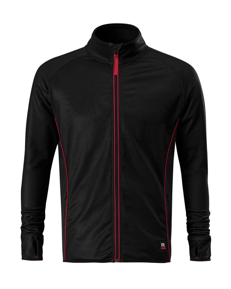 Pánská mikina s límcem z žebrového úpletu. Celopropínací na kovový zip. Dvě přední kapsy. Límec, boční díly, spodní lem, manžety rukávů a lemy kapes z žebrového úpletu.