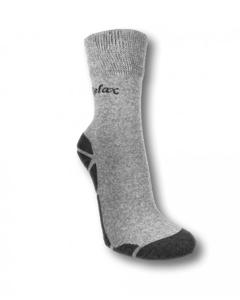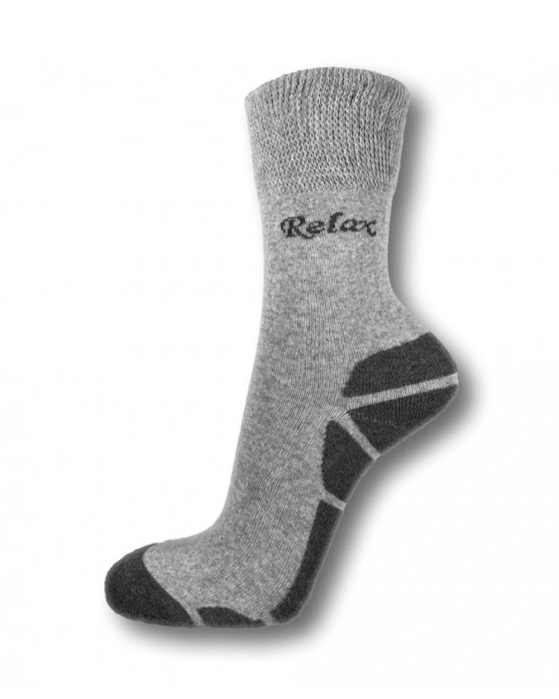 Ponožky RELAX vyrobené z tenké pleteniny, které mají velice jemnou a pružnou gumičku pro bezotlakové nošení po celý den. Dále v oblasti chodidla je ponožka tvořená froté úpletem.