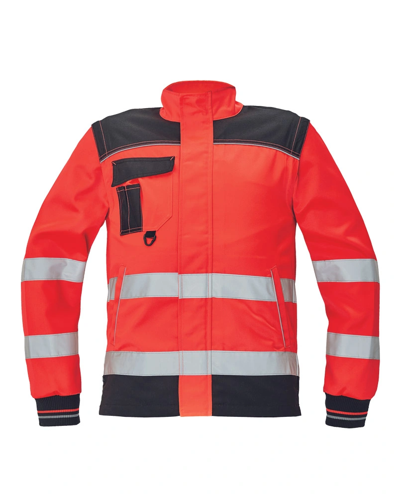 Pánská pracovní bunda se stojáčkem a reflexními doplňky. Hi-vis materiál. Hluboké postranní kapsy, multifukční náprsní kapsa. Zesíletna oblast ramen, náplety na rukávech. 2 reflexní pruhy po obvodu těla a na rukávech.Více informací