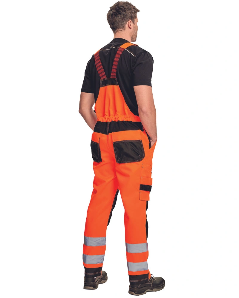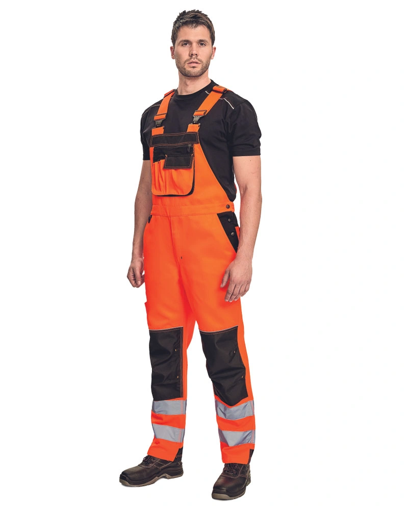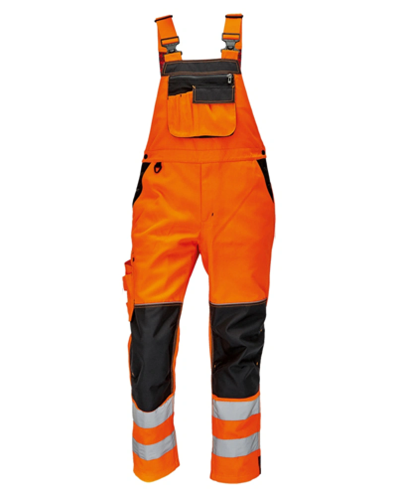 Pracovní kalhoty s laclem, reflexní prvky. Elastické šle a pas. 2 hluboké postranní kapsy, 1 multifunkční kapsa na straně nohavice. 1 nakládaná multifunkční náprsní kapsa na laclu, 2 nakládané zadní kapsy s patkou. Možnost vložení kolenních výztuh.Více informací