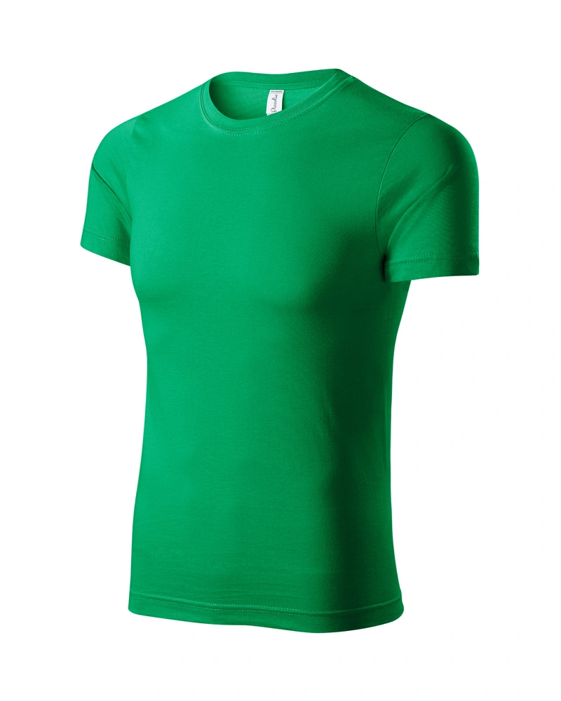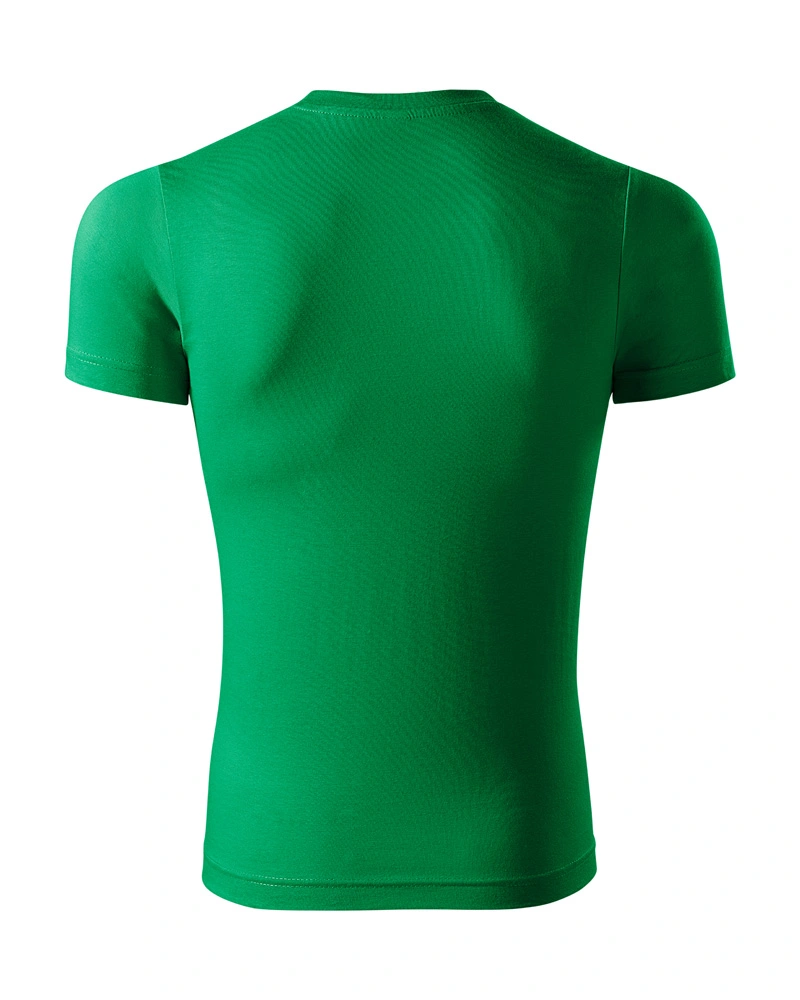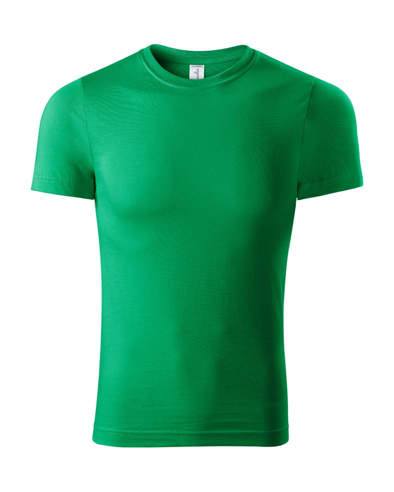 Dětské tričko se silikonovou úpravou. Střih s bočními švy, úzký lem průkrčníku z žebrového úpletu. Vnitřní část průkrčníku začištěna páskou. Zpevněna ramenní švy páskou. Velikosti 110-158cm.